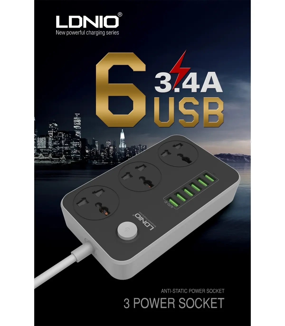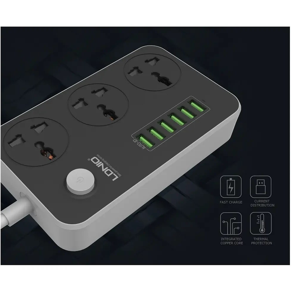 3 پریز شارژ با قابلیت اتصال 2 و 3 شاخه 6 درگاه شارژ USB AutoID: تخصیص هوشمند شدت جریان خروجی حداکثر شدت جریان خروجی 3.4 آمپر Fast Charge کابل برق 2 متری کلید خاموش-روشن کیفیت عالی